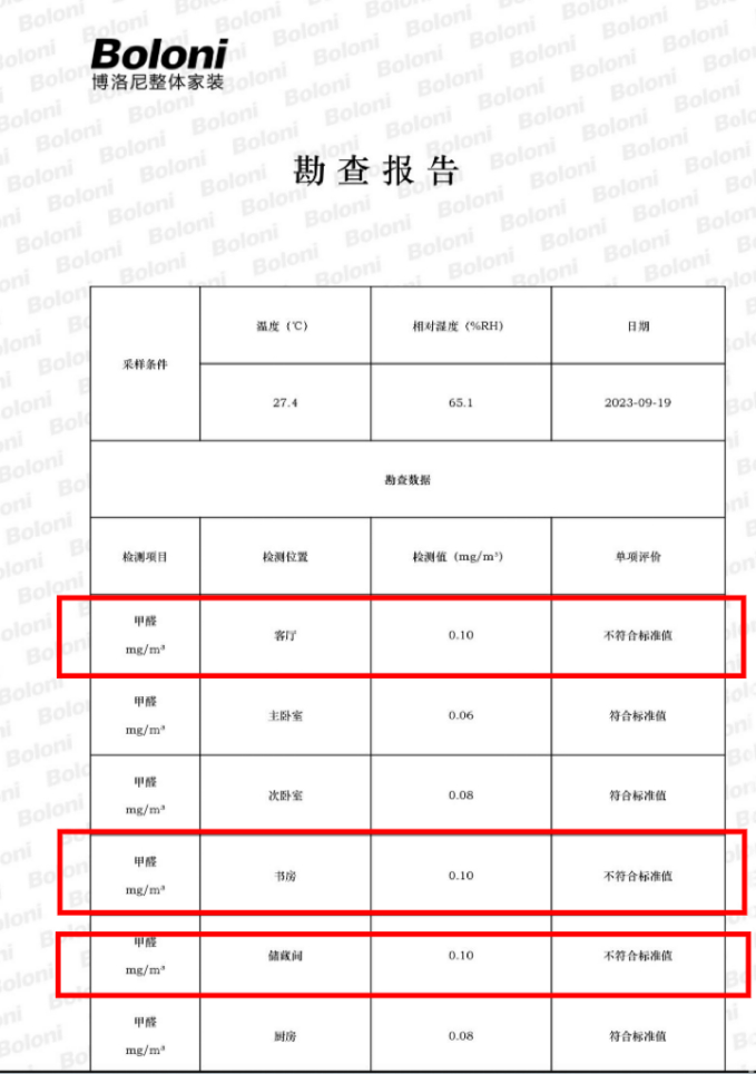 百万家装甲醛超标,博洛尼全屋定制遭投诉