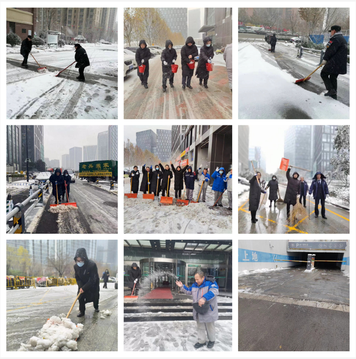 在高新区,12月14日中午起,高新区各物业企业从业人员就开始用扫帚、铁锹、推雪铲、扫雪机等工具,按照“先坡后缓,先主后次;边下边清,协同作业”的原则,铲的铲、扫的扫、推的推,以高效的行动迅速展开了除雪铲冰工作。截至15日上午,各物业服务区域主要道路和出入口,已无明显积雪。