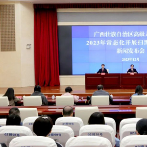 12月14日,自治区高级人民法院举行新闻发布会,通报2023年广西法院常态化开展扫黑除恶斗争工作的主要情况,同时公布五起重大黑恶势力犯罪案件处理结果。自治区高院党组成员、副院长陈敏出席新闻发布会。