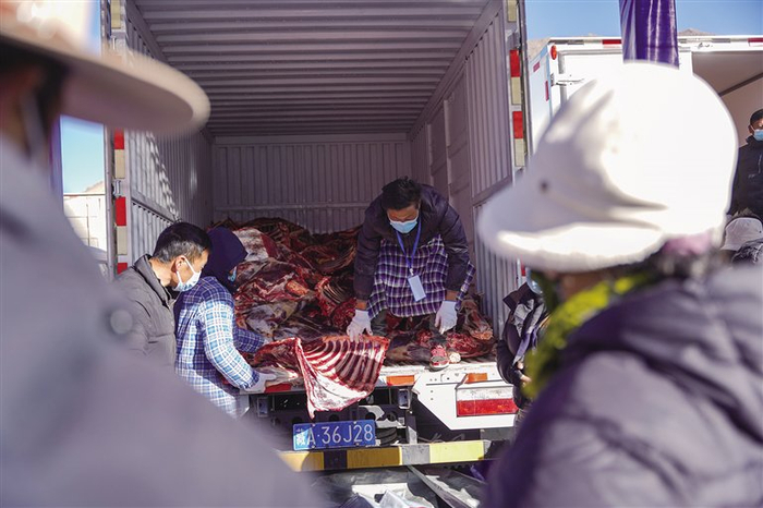 12月15日,由拉萨市农业农村局承办的“2023年拉萨市牦牛肉集中上市销售活动”正式开启,该活动为期7天,共计投放48万斤牦牛肉。记者了解到,为了让市民群众买到放心肉,此次活动所出售的牦牛肉均产自拉萨本地,且必须经产地检疫合格后方能进行销售。