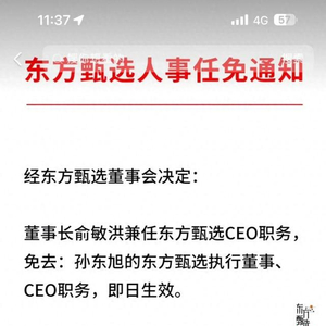 12月16日,东方甄选公告称免去孙东旭东方甄选执行董事、CEO职务,董事长俞敏洪兼任东方甄选CEO职务。