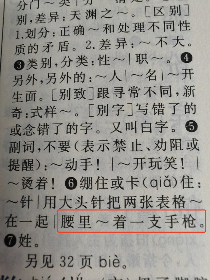 第31页,“别”字的注释“腰里别了一支手枪”;