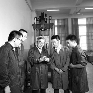 郑健龙(右二)带领团队进行高性能沥青路面材料力学行为研究。资料图片