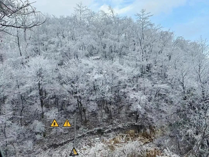 下午3点多,位于天目山澄境民宿(海拔900多米)的蔡女士发视频说:“室外已经有薄薄一层冰形成,本周末雾凇可待……”