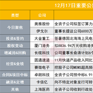 伊戈尔公告,公司实控人、董事长肖俊承提议公司回购公司部分股票,并在未来适宜时机将回购股份用于股权激励或员工持股计划,回购资金总额为6000万元至1.2亿元。