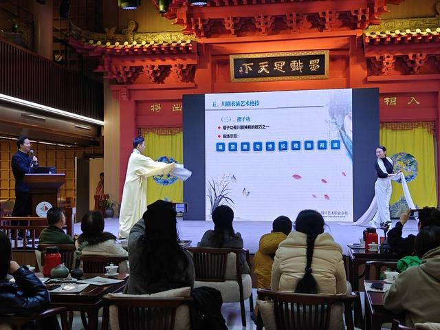“川剧是巴蜀文化的精髓,剧本的文学性强,语言风趣、幽默,表演程式功法丰富,表演绝技独到,雅俗共享。”川剧是中国戏曲宝库中的一颗璀璨明珠,其表演形式独具特色,声腔曲调别具一格,表演技艺精湛绝伦。12月17日,在成都“戏窝子”悦来茶园举行的“以戏载道·传承古老川剧青春之美——肖德美百场讲座分享”活动中,川剧表演艺术家、国家级非遗川剧传承人、梅花奖得主肖德美,就通过现场的讲、唱、念、演,为观众讲述川剧的独特之美。