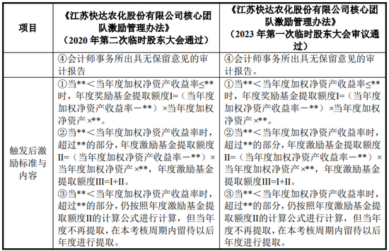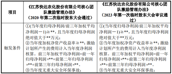 根据《江苏快达农化股份有限公司核心团队激励管理办法》(2023年第一次临时股东大会审议通过),如发行人当年度归母净利润绝对值小于**万元,不满足触发条件,不能发放核心团队激励。经测算发行人2023年净利润超过12,962.14万元才可能触发核心团队奖励。