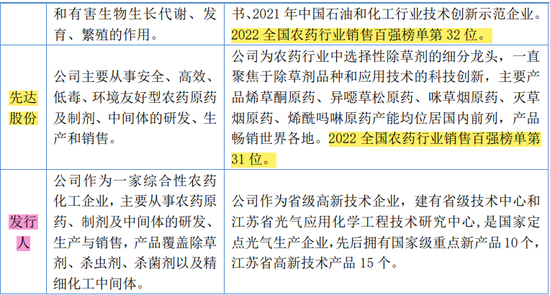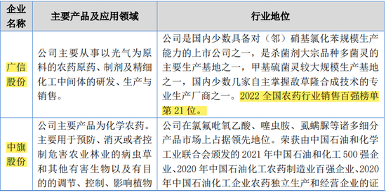 根据中国农药工业协会发布的“2023年农药行业销售百强排行榜”,发行人2022年度主营业务收入超过10亿元,可排至榜单第78位,广信股份、先达股份、中旗股份作为快达农化的可比公司,在该榜单排名分别为第21位、第32位、第31位。