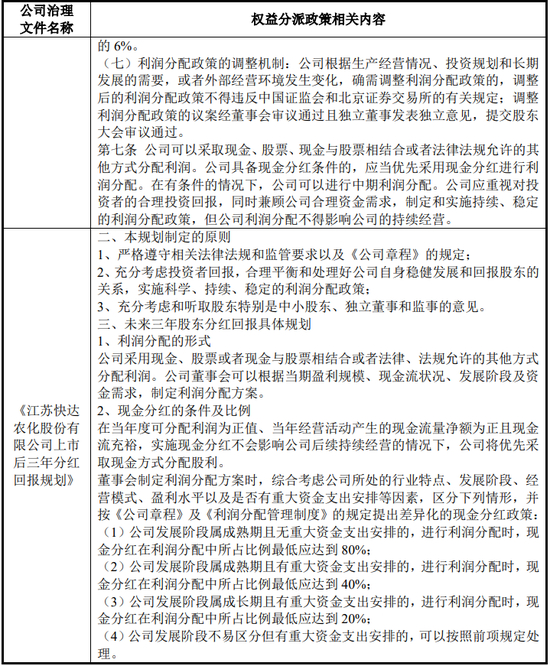 “本公司作为发行人的控股股东,将督促发行人严格按照《江苏快达农化股份有限公司章程(草案)》、《江苏快达农化股份有限公司利润分配管理制度》以及《江苏快达农化股份有限公司上市后三年分红回报规划》的相关内容执行相关利润分配政策。发行人在北交所上市后,本公司将在发行人股东大会审议董事会根据《江苏快达农化股份有限公司章程(草案)》制定的具体利润分配方案时依法进行表决,并督促发行人根据相关决议实施利润分配。”