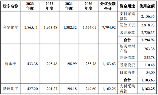 2020年至今,发行人共进行了4次现金分红,分红金额分别为3,282.37万元、2,553.57万元、3,830.36万元和5,617.86万元,公司主要股东取得分红款后的具体去向如下: