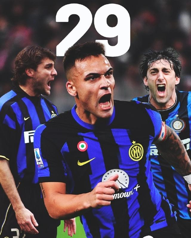 数据统计显示,本场比赛的进球是劳塔罗在2023年打进的意甲第29球,这也让他超越了国米传奇射手维埃里和迭戈·米利托,成为自2000年以来国米自然年内进球最多的球员。