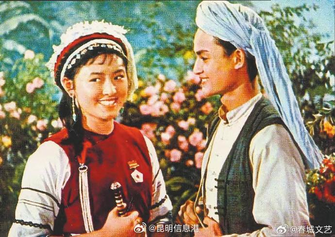 1959年10月,电影《五朵金花》作为国庆十周年献礼片在全国公映。影片讲述了云南大理两位白族青年阿鹏与金花的爱情故事,展现了人与人之间纯真、质朴的情感,描绘了一幅积极、乐观、上进的社会主义边疆少数民族的新生活画卷。当时的新中国是年轻的、朝气蓬勃的,影片勾勒的美好场景,也成为各民族共有精神家园的艺术表达。自1959年起,《五朵金花》先后在46个国家公映,创下当时中国电影在国外发行的最高纪录。1960年,在埃及开罗举行的第二届亚非电影节上,《五朵金花》一举夺得最佳导演银鹰奖、最佳女主角银鹰奖,埃及总统纳赛尔还邀请杨丽坤前往埃及领奖,并亲切接见了她。如今,《五朵金花》并没有随着时间的流逝而在人们的记忆中消失,“大理三月好风光,蝴蝶泉边好梳妆……地久天长永相爱。”的电影主题曲依旧传唱。@春城文艺