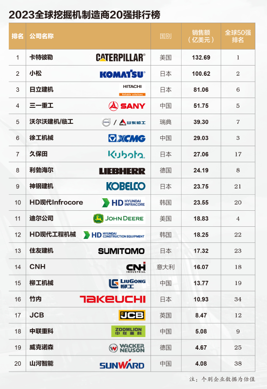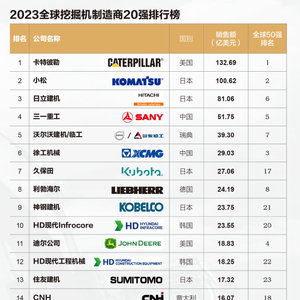 2023全球挖掘机制造商20强排行榜出炉,6家中国企业入榜