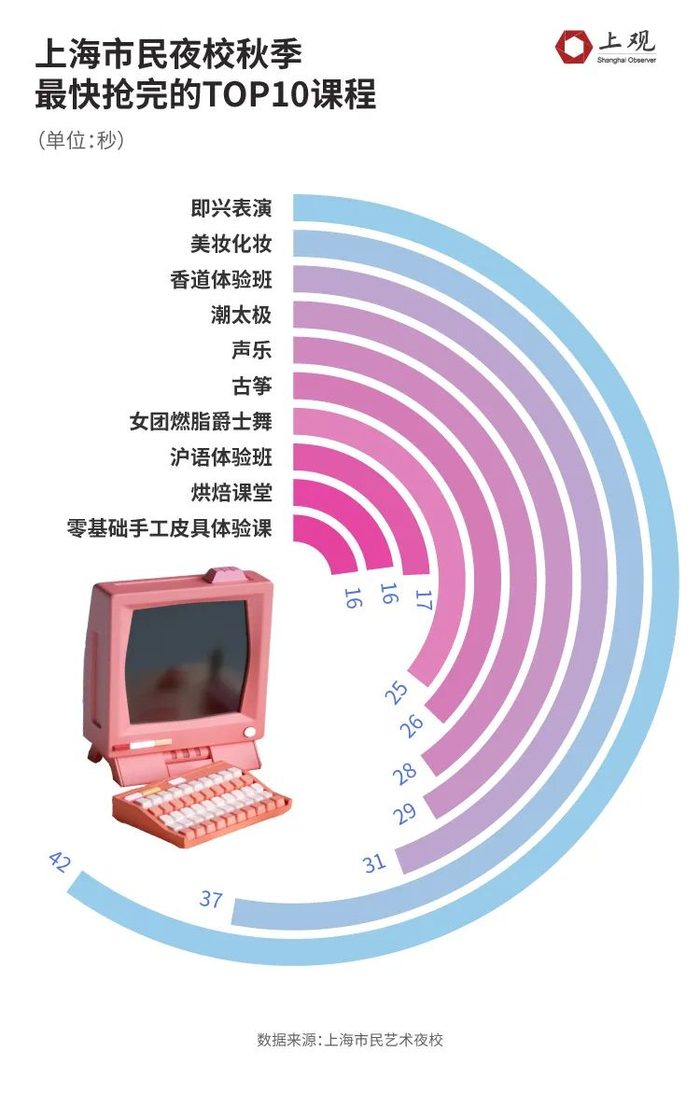 报名当天,市民夜校开设的27门课程均在三分钟内被抢报一空。