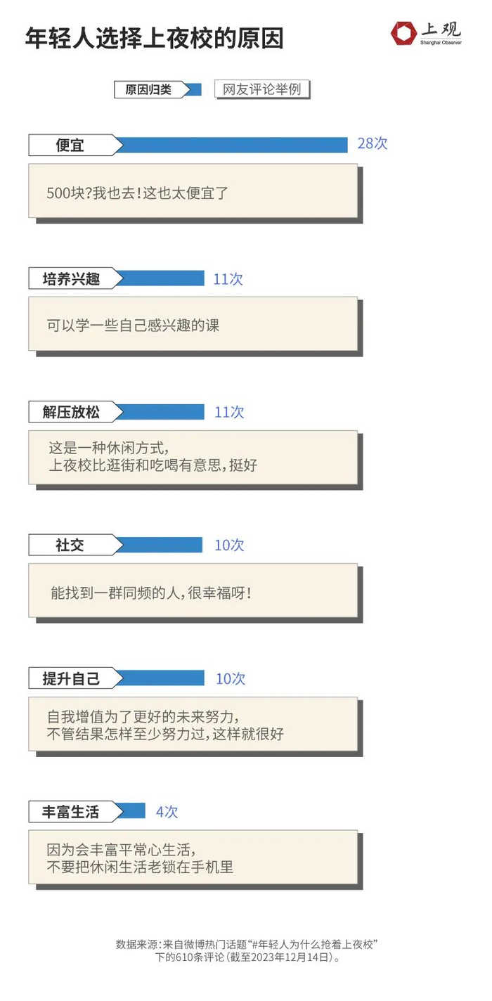 解压放松、拓宽社交也成为不少年轻人上夜校的动机。