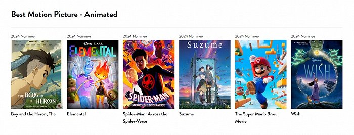 与此同时,在正趋白热化的颁奖季竞争中,《苍鹭与少年》也得到重量级奖项的青睐。本周一,第81届金球奖正式公布提名名单,《苍鹭与少年》顺利入围“最佳动画电影”的六强之列,将与《疯狂元素城》、《蜘蛛侠:纵横宇宙》、《玲芽之旅》、《超级马力欧兄弟大电影》和《星愿》共同角逐这一荣誉。