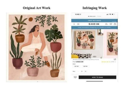 在申诉书,Stephenson表示,过去三年内,SHEIN从未试图联系原告寻求授权许可,擅自制作了艺术复制品并以作商用,侵犯了原告的创作权和经济利益。价格从4美元起,远远低于允许授权零售商出售的89美元。