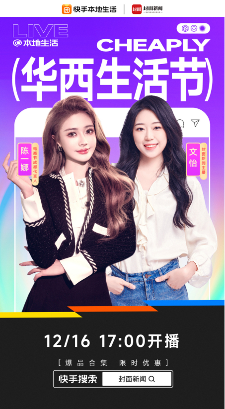 “这次我们在成都,特别邀请到了封面新闻的主播为老铁们‘安利’四川的美食!”12月16日,随着快手主播陈一娜的介绍,封面新闻主播文怡从新闻直播间走进带货直播间,共同开启了由封面新闻联合快手本地生活举办的“华西生活节”专场带货直播。