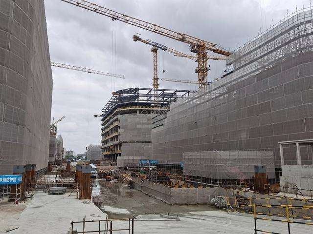 今天的工地现场,塔吊、挖机、渣土车等设备正紧张有序地进行施工作业,工匠们干劲十足,不少楼栋正在进行二结构施工,俯瞰整个项目磅礴大气,走近细看不失巧思精致,9栋楼交相辉映之下,智慧生活贸易区已见雏形。
