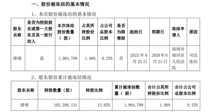 唐球部分股份遭冻结公开资料显示,唐球现年52岁,大学本科学历。2004年8月至2010年3月任赢时胜执行董事、总经理;2010年3月起至2020年1月任赢时胜总经理;2010年3月起至今任赢时胜董事长。2022年年报显示,唐球的年薪为220万元,期末持股数为1.02亿股,期末参考持股市值为8.4亿元。