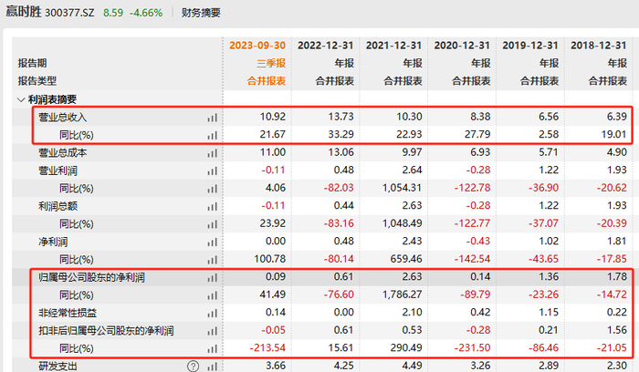 业绩表现欠佳据了解,赢时胜是金融行业系统解决方案供应商,资产托管和资产管理是公司的传统核心业务产品服务领域,主要为金融机构的中后台信息化系统提供系统产品和服务解决方案。从业绩表现来看,今年前三季度,赢时胜实现营业收入10.92亿元,同比增长21.67%;归母净利润875.2万元,同比增长41.49%。但赢时胜近年来的经营情况并不稳定,2022年净利润大幅下滑。