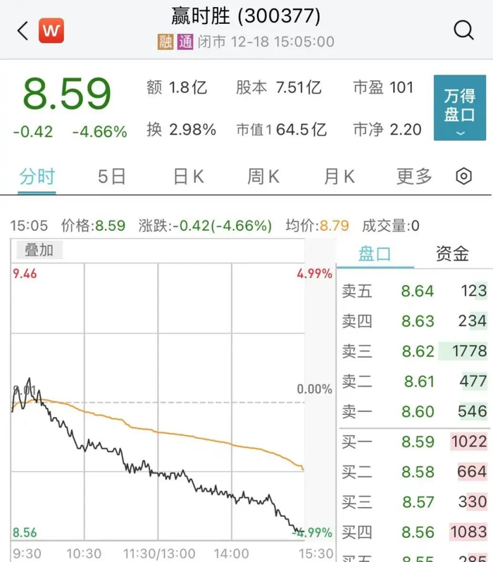 中国基金报记者 李智又有上市公司董事长出事。12月18日,赢时胜发布公告称,公司实际控制人之一、董事长唐球被辽宁营口纪检委实施留置措施,配合协助调查有关事情。今日该股震荡走低,截至收盘跌4.66%,最新总市值为64.5亿元。