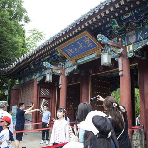 暑假期间,不少家长陪伴孩子来到北京大学西门打卡留影。据ICphoto