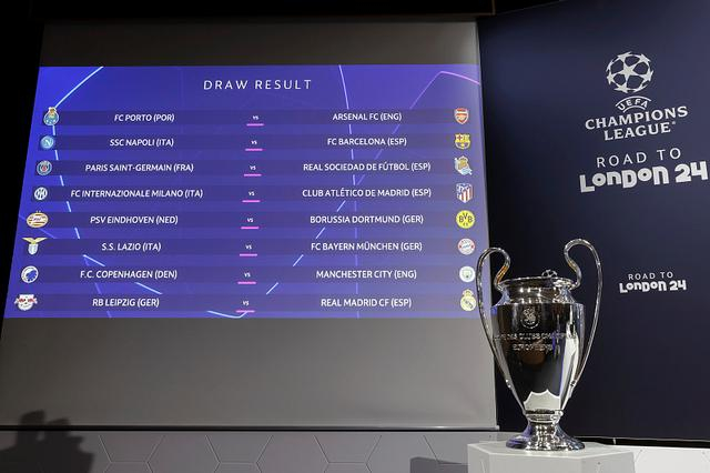 具体来说,这些对阵为波尔图对阿森纳、巴黎圣日耳曼对垒皇家社会、埃因霍温将和多特蒙德捉对厮杀、拉齐奥挑战拜仁慕尼黑,哥本哈根去迎战曼城,RB莱比锡要与皇家马德里直接碰面。