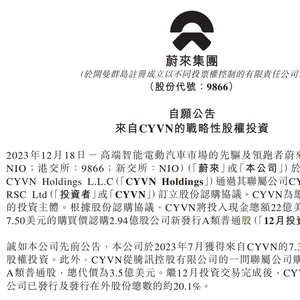 北京时间12月18日,美股盘前,蔚来公告,公司已与CYVN Holdings L.L.C(“CYVN Holdings”)通过其联属公司CYVN Investments RSC Ltd(“投资者”或“CYVN”)订立股份认购协议。CYVN为总部位于阿布扎比的投资主体。