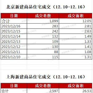 中指研究院数据显示,12月16日、17日两天,上海新建商品住宅网签977套,网签面积10.76万平方米,较上周末(12.9-12.10)分别增长126%、128%。