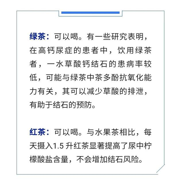 大部分患者都会被告知不宜饮茶,原因是茶类中富含草酸,会增加尿结石的产生。但最新的研究表明,这个说法可能不对的,适当喝茶有助于预防结石。