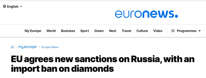 从明年1月1日起,欧盟将禁止从俄罗斯直接或间接进口、购买或转让钻石。这项禁令适用于原产于俄罗斯的钻石、从俄罗斯出口的钻石、从俄罗斯过境的钻石和在第三国加工的俄罗斯钻石。
