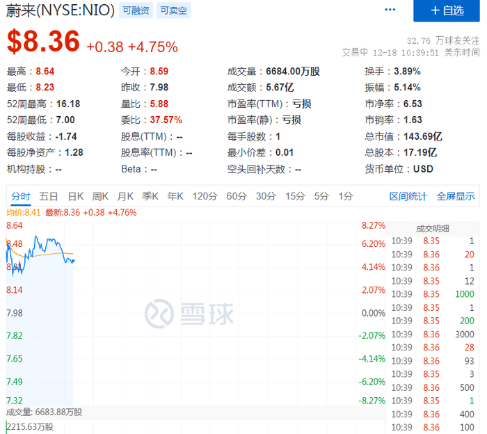 蔚来股价大涨,消息面上,该公司又获得新一轮来自中东的22亿美元投资。