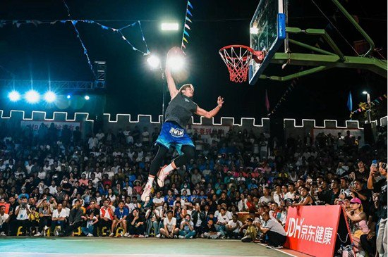 来自贵阳的00后主播刘安鑫,在快手账号上有众多粉丝。作为“村BA”的记录者,刘安鑫不仅通过短视频实现了自己的梦想,也让更多人关注贵州篮球的发展。图为刘安鑫在“快手村BA”贵州站决赛赛场表演飞身扣篮。受访者供图