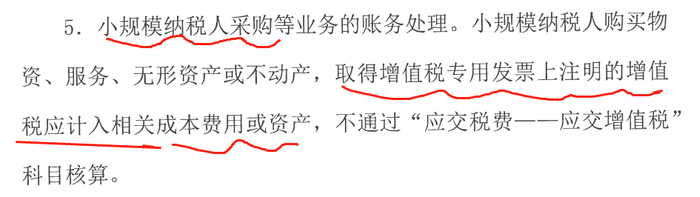 财会2016年22号里面有段规定,小规模纳税人取得专票的增值税直接计入成本费用。