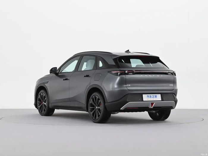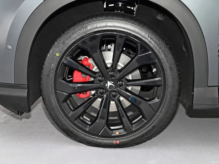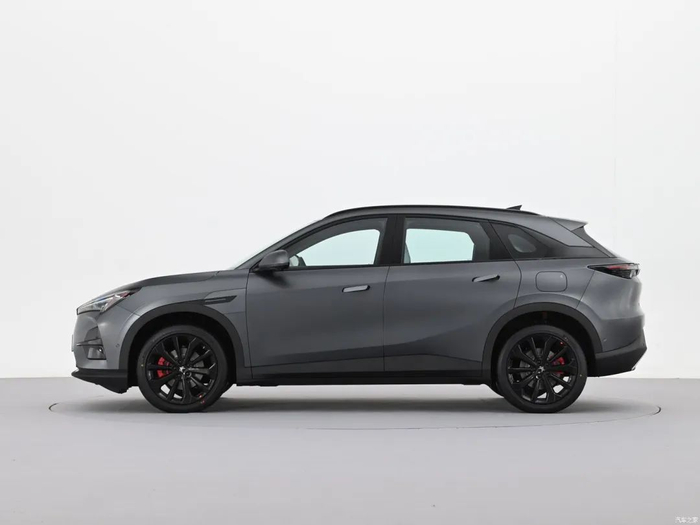 车身侧面来看,该车采用隐藏式车门把手,配合微微上扬的腰线,以及前后微微凸起的轮眉线条,大大提升整车的层次感。此外,该车还配备密辐式亮黑色轮圈,并加入红色刹车卡钳,适当增加车辆运动感。