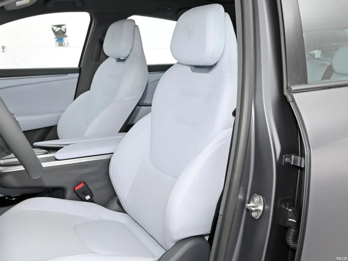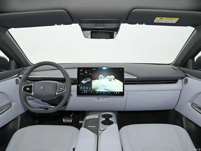 内饰方面,新车采用了当前非常流行的极简内饰设计,并未配备单独的仪表盘,只配备了一块大尺寸中控屏幕,双辐方向盘的造型比较运动。新车内饰采用了双色设计,能够营造出一些时尚感。前排中央扶手处采用了比较独特的Y形线条设计,扶手前方配备了两个杯架。