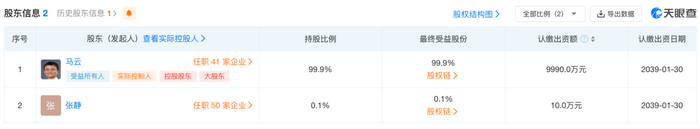 从股权穿透信息来看,杭州大井头贰拾贰号文化艺术有限公司为该公司股东之一,持股比例为10%,马云持有杭州大井头贰拾贰号文化艺术有限公司99%的股权。
