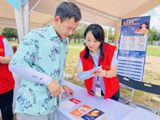 人保财险浙江绍兴嵊州支公司工作人员在2023氧气BAOBAO音乐节为19名乐队成员提供“安业保”新市民保障,并在音乐节现场为观众提供保险知识普及服务。