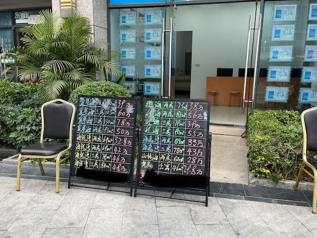 走在惠东海边的街道上,除了一些吃食小店,随处可见的还有房产中介门店,门口清一色地立着广告牌,上面写着在售的二手房源信息,有的小区大门口也有类似的牌子,两房、三房户型总价20~50万不等。