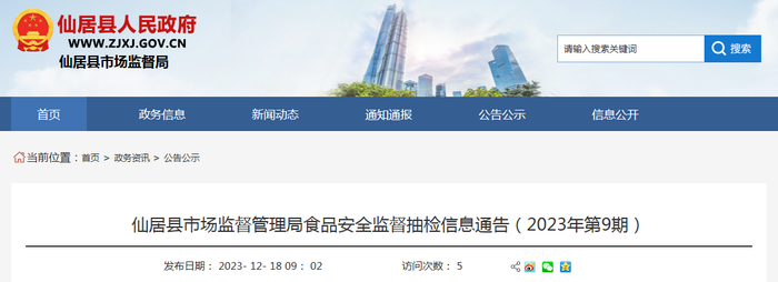 仙居县市场监督管理局食品安全监督抽检信息通告(2023年第9期)