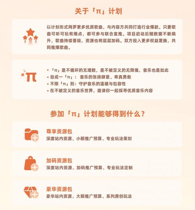 为进一步激活平台生态活力,探索“短视频+音乐”的无限可能,快手音乐2024将推出“歌曲宣推年度企划「π」计划”,网罗更多优质歌曲,与内容方共同打造行业爆款。快手音乐认为,音乐和「π」一样,都应该是不被定义的无限值,希望能够通过「π」计划,在不被定义的音乐世界,与更多优秀的音乐人、内容方一起探寻优质音乐内容。