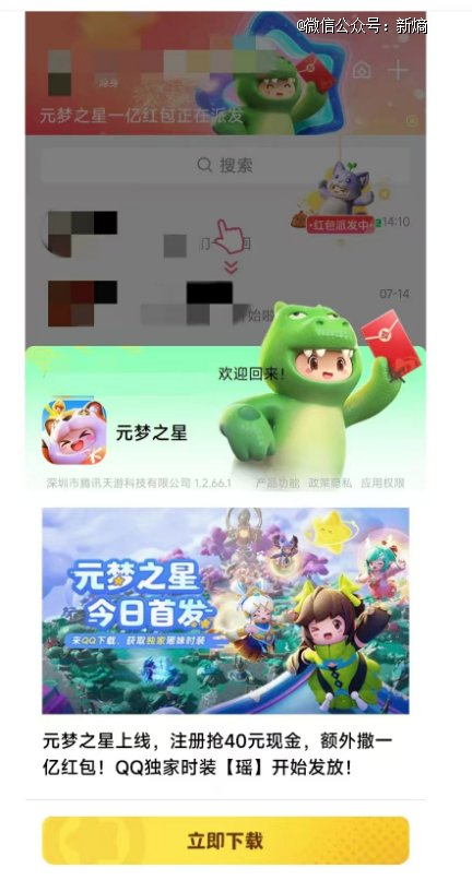 在微博、抖音、B站、小红书、斗鱼、虎牙、快手等一众平台中,用户都能看到腾讯《元梦之星》的宣发素材或植入内容,有用户吐槽,短视频平台甚至到了“三步刷到一个元梦之星”的地步。有知乎用户写道:“给(腾讯)一个游戏,他能一天在QQ里弹十多个弹窗,一个不注意就进广告预约开服WiFi自动下载一气呵成。”