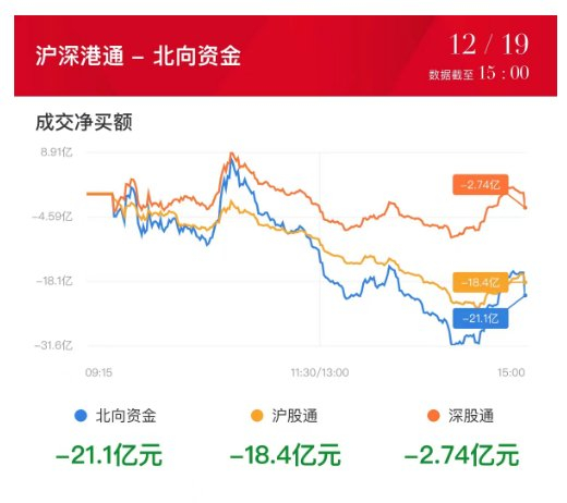 北向资金全天净卖出21.13亿,其中沪股通净卖出18.38亿元,深股通净卖出2.74亿元。