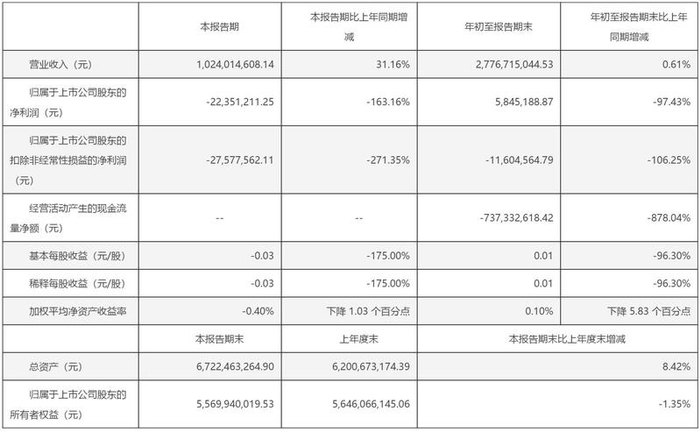 铜冠铜箔10月25日发布三季度业绩公告显示,2023年前三季度营收约27.77亿元,同比增加0.61%;归属于上市公司股东的净利润约585万元,同比减少97.43%;基本每股收益0.01元,同比减少96.3%。