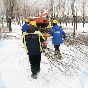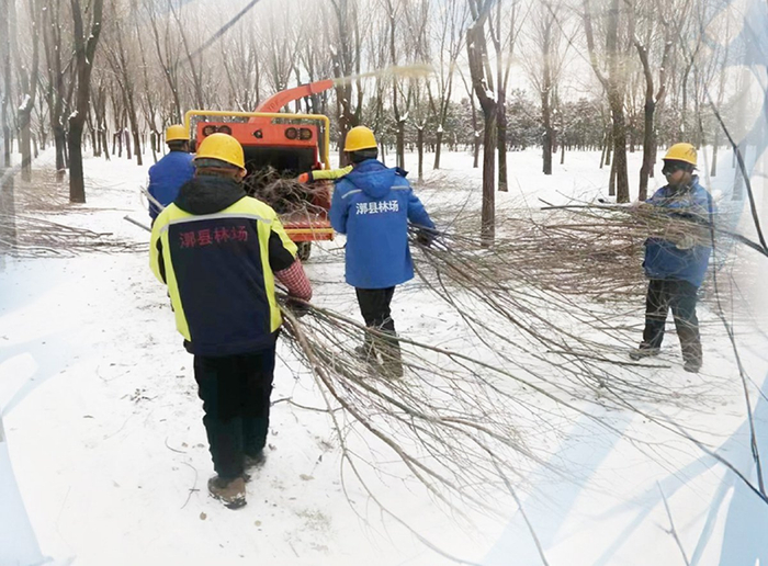 漷县集体林场工人将修剪下来的树枝进行粉碎再利用。