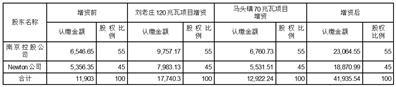 股东情况:南京控股公司持有55%股权,Newton公司持有45%股权。