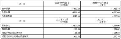 深能淮安新能源公司最近一年又一期的财务报表主要财务数据如下: