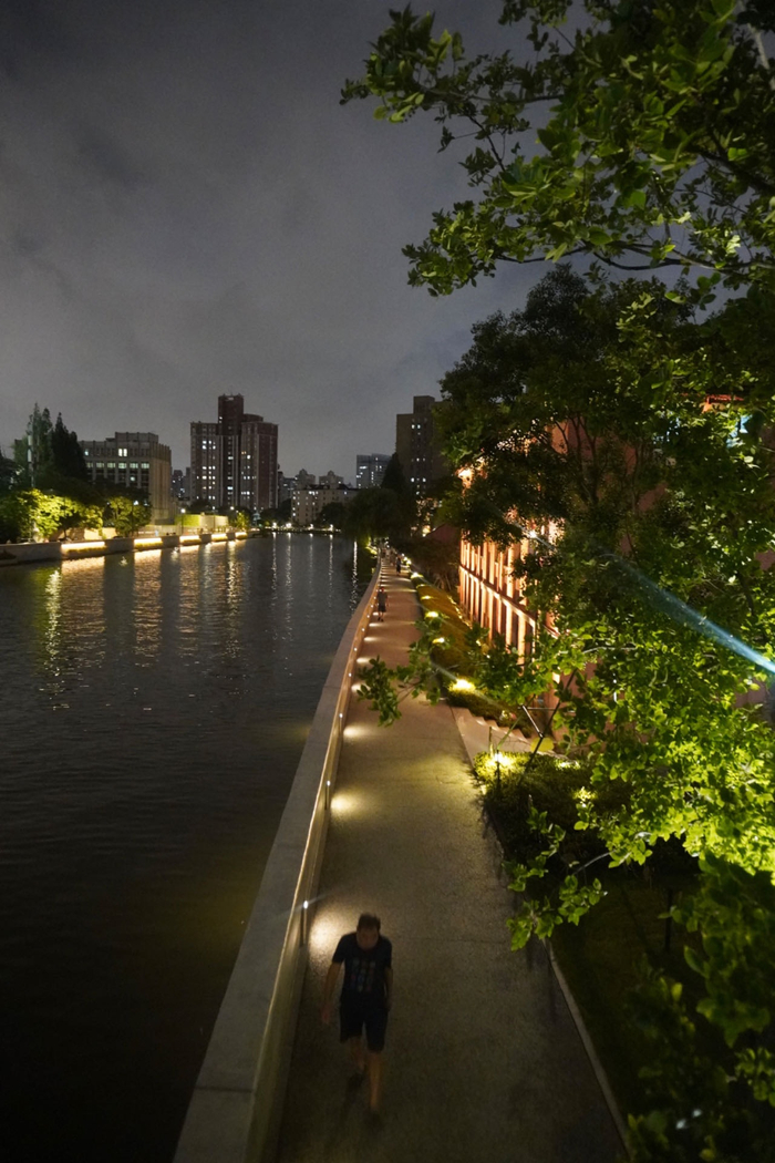 2023年夏天,通过苏州河步道(7:00-20:45步道开放)可以进入华东政法大学长宁校区,无需刷身份证或预约。澎湃新闻记者 邹佳雯 图