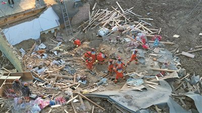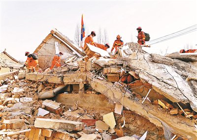 12月19日,救援人员在甘肃省临夏州积石山县大河家镇进行救援